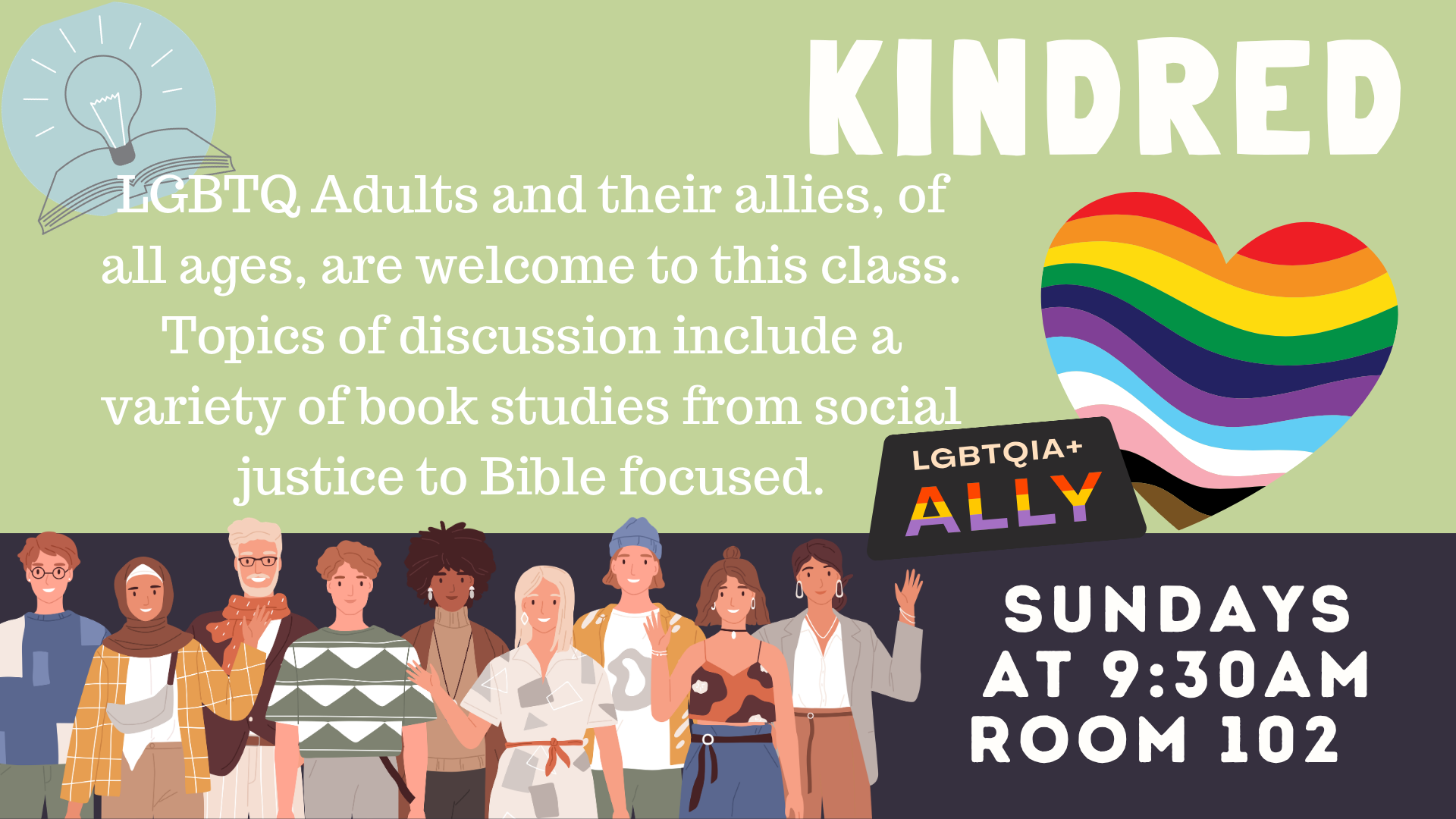 Kindred is an adult Sunday class for those who enjoy different perspectives, asking hard questions, and giving thoughtful answers.